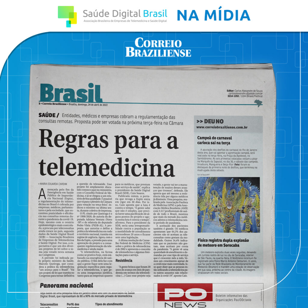 Foi destaque no Correio Braziliense matéria sobre o crescimento da pressão pela regulamentação da telemedicina no país. Mesmo com o cenário epidemiológico mais controlado, a procura por teleconsultas ainda cresce […]