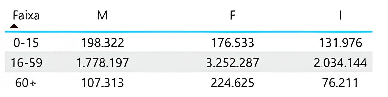 Distribuição de atendimentos por faixa etária e sexo.